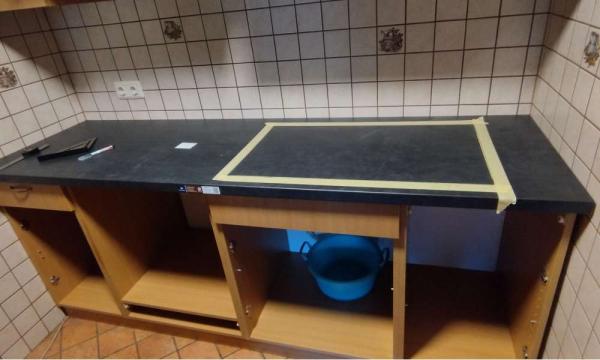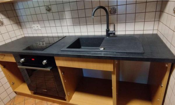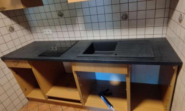 - Opis reference Stranki smo zamenjalu pult, naredili izreze za kuhalno ploščo in kuhinjsko korito. Vgradili smo kuhinjsko korito vključno s kuhinjsko armaturo in sifonom. Vgradili in priklopili smo tudi kuhalno ploščo in pečico.