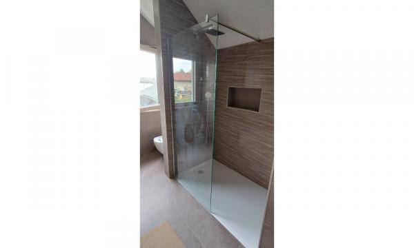 Stranki smo v kopalnici izvedli montažo walk-in tuš stene, ki predstavlja elegantno in zelo praktično rešitev za vsakodnevno uporabo. Najprej smo natančno izmerili prostor in določili optimalno pozicijo same stene, da je zagotovljeno udobno vstopanje ter pravilno odvajanje vode proti odtoku.
